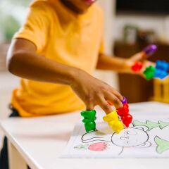 Bu altı sevimli ayı boya kaleminden oluşan set, çocukların parmaklarına tam uyum sağlar. Bu parmak boya kalemlerinin her biri sevimli bir oyuncak ayı şeklindedir ve set gökkuşağının her rengini içerir.